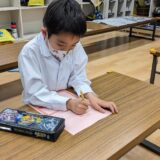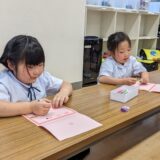 1年生は最近習ったひらがなで一生懸命文字を書いたり・・・色ペンを使って絵や模様を描いてカードいっぱいに飾り付けをしたり・・・英語で文章を考えたり・・・と工夫がいっぱい見られる可愛いメッセージカードとなっていました。恥ずかしくてなかなか書けない!という子ども達もいましたが、皆それぞれ楽しくメッセージカードを書けたようで良かったです💌