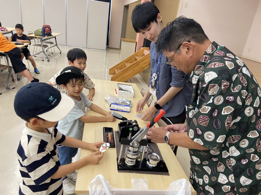2024年専門学校連携プログラムvol.2 専門学校連携プログラム第二弾の「缶バッチ作り」が先日8月9日に龍馬デザイン・ビゥーティ専門学校で行われました! 今回の講師はマンガ科の岩神先生と安岡先生。30名ほどの子どもたちを相手に流石のお二人!!慣れた様子で説明をしてくれ、缶バッチ作りスタート! みんな自分の好きなものやイラスト、キャラクターなどを描きました♪そして、、、自分が描いたものが缶バッチになる所を興味津々で見てました! お二人の先生方、毎年ありがとうございます!!!!!