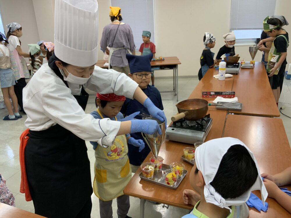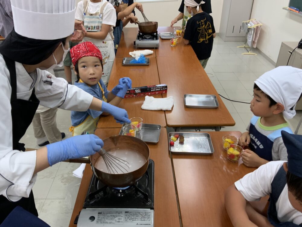 8月19日、今回の連携プログラムは龍馬情報ビジネス&フード専門学校にて「ゼリー作り」を行ってきました。今回の講師もいつもお世話になっている、製菓・製パン学科の清水先生でした!