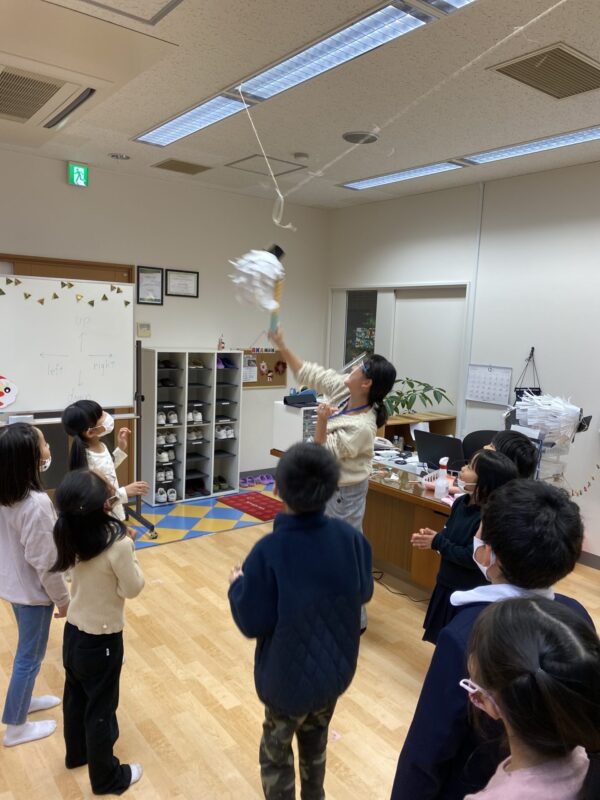 パーティではフルーツバスケットならぬ〝クリスマスバスケット〟をしたり、〝サンタの福笑い〟、最後には〝ピニャータ割り〟をして大盛り上がりでした!