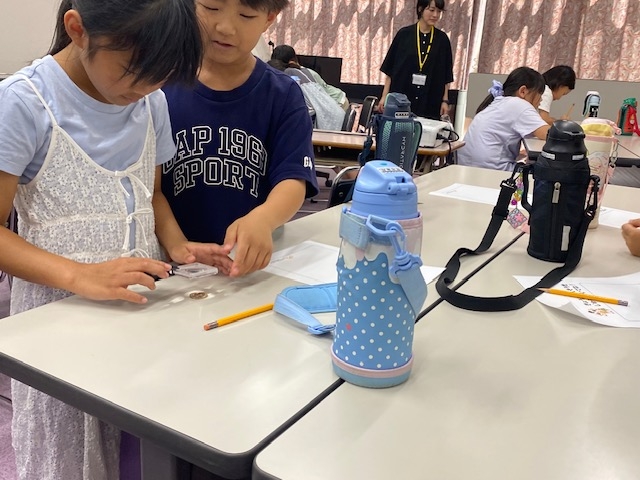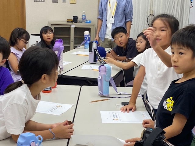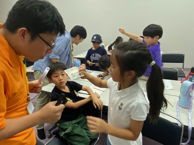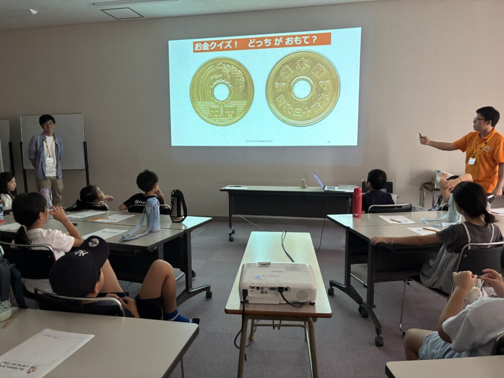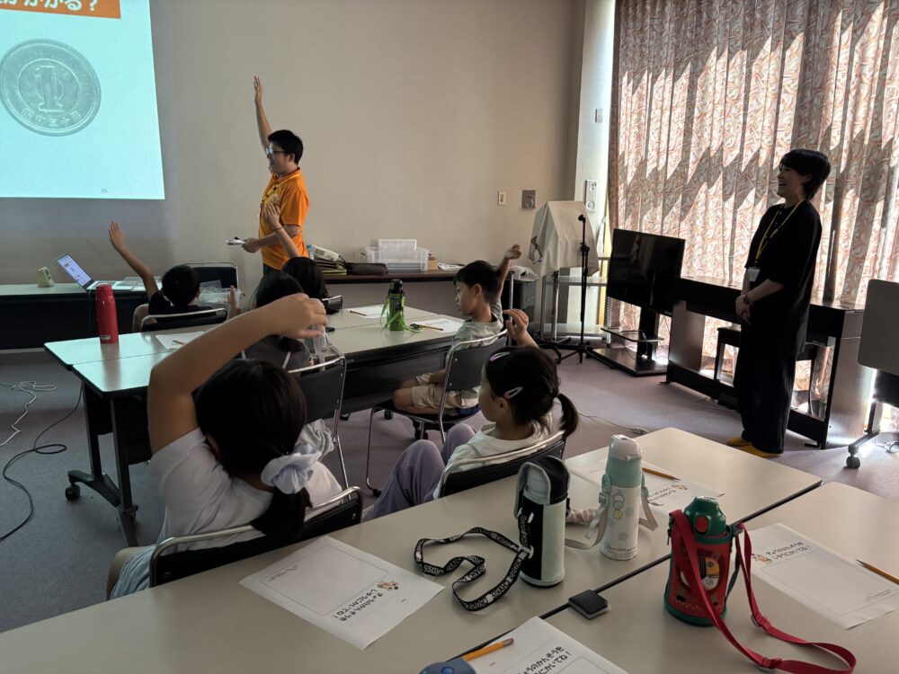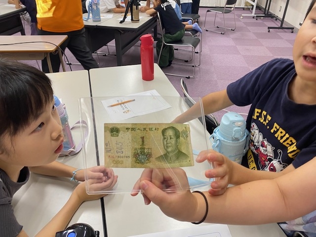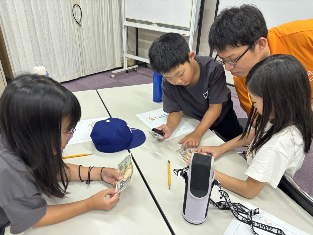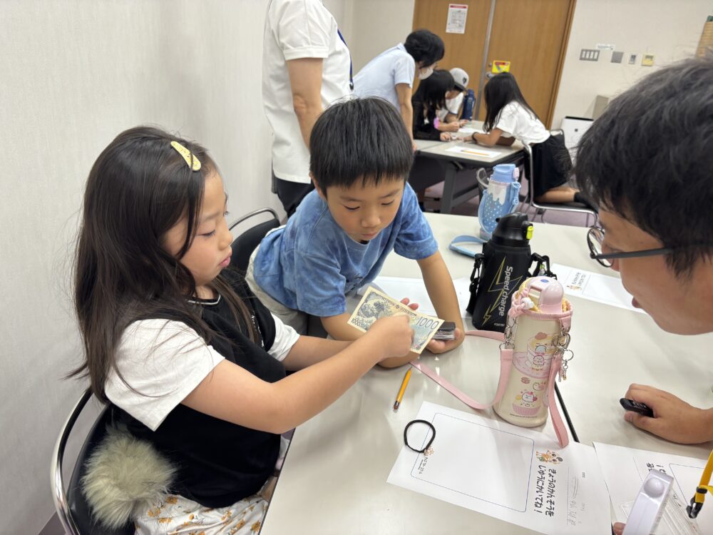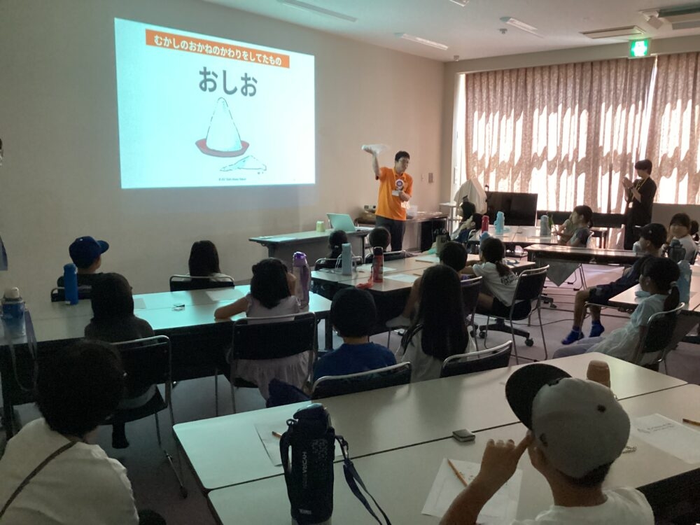 💰キッズ・マネー・スクール💴 🪙キッズ・マネー・スクール💰 ☆イベントプログラム第4弾☆ 8月19日にキッズマネースクール認定講師を迎え、子どもたちはお金クイズにチャレンジしながら、お金の成り立ちや基本知識について楽しく学びました。 子どもたちに正しい金銭感覚を身につけてもらうプログラムで、みんな日本のお金や世界のお金を見せてもらい、本物のお金か偽物のお金かルーペで楽しく確認していました。 お金が変化してきた歴史やお金の使い方、お金がどのようにお家にくるのかなど、まーしー先生のお話をみんな興味津々に聞き入っていました。