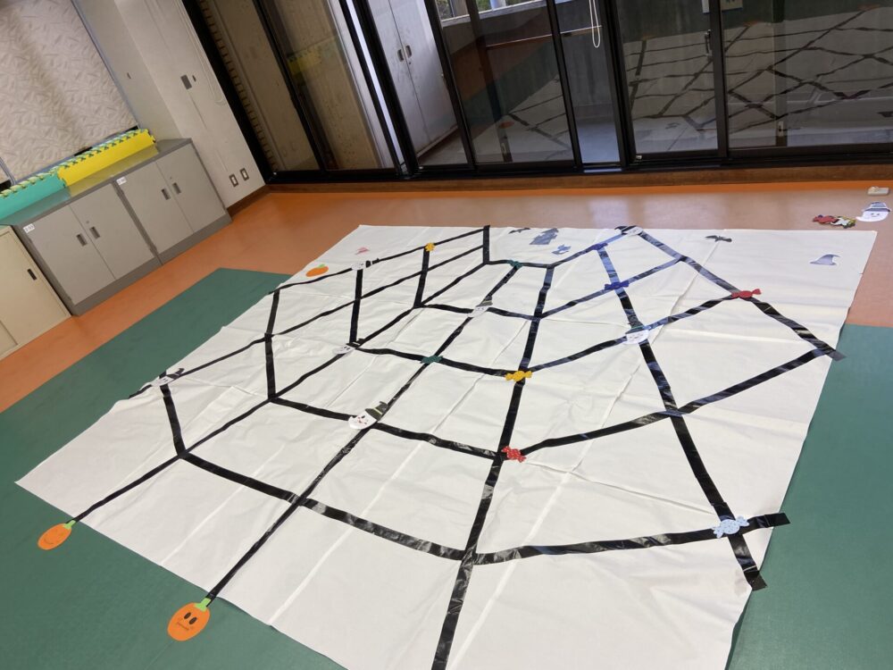 3種類のゲームは、                                 『魔女の帽子の輪投げ』・『スパイダーボールキャッチ』・『蜘蛛の巣すごろく』でした。一通りスタンプを集めると時間内は何度もゲームで遊ぶことができ、みんなお気に入りのゲームに何度もチャレンジしていました。